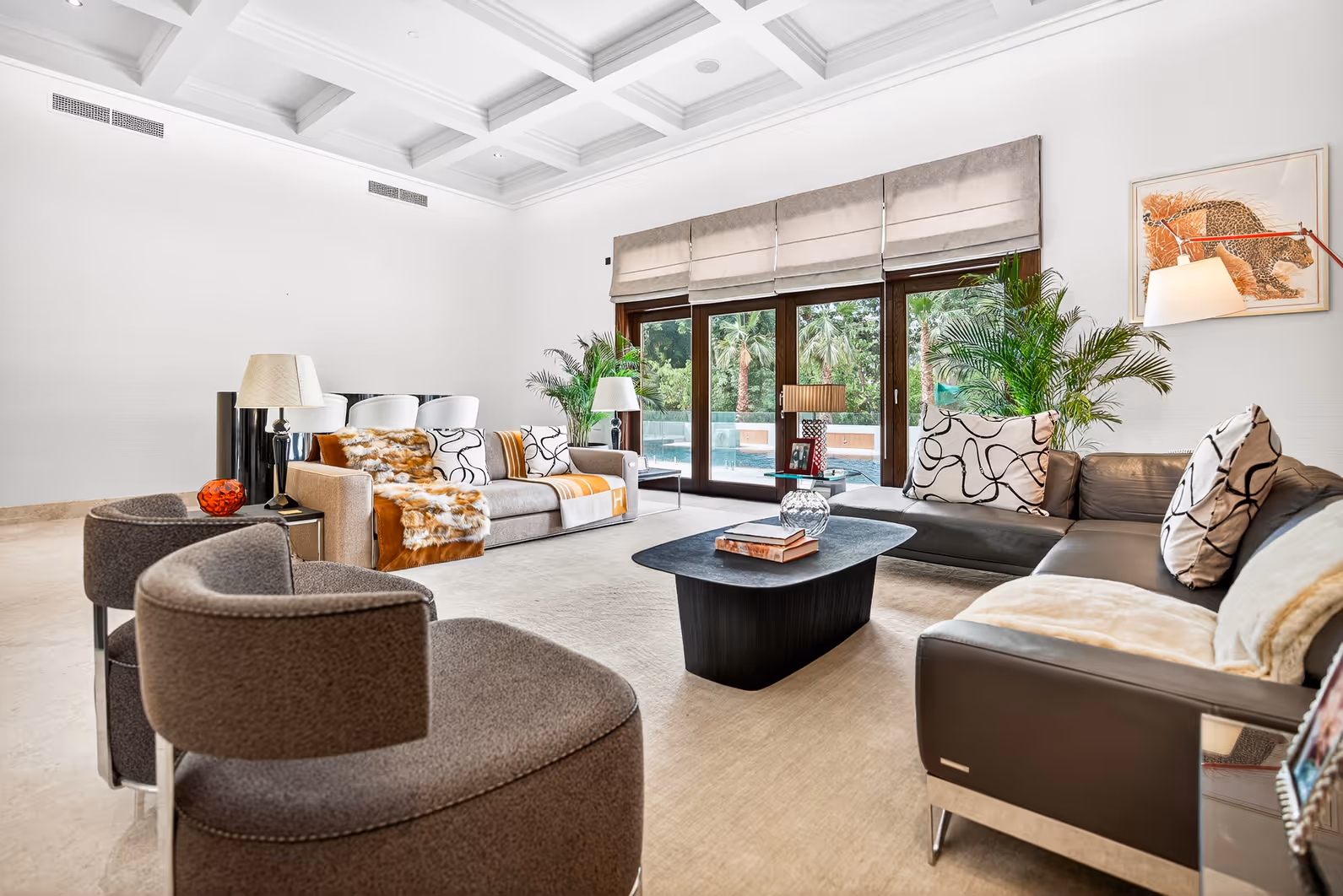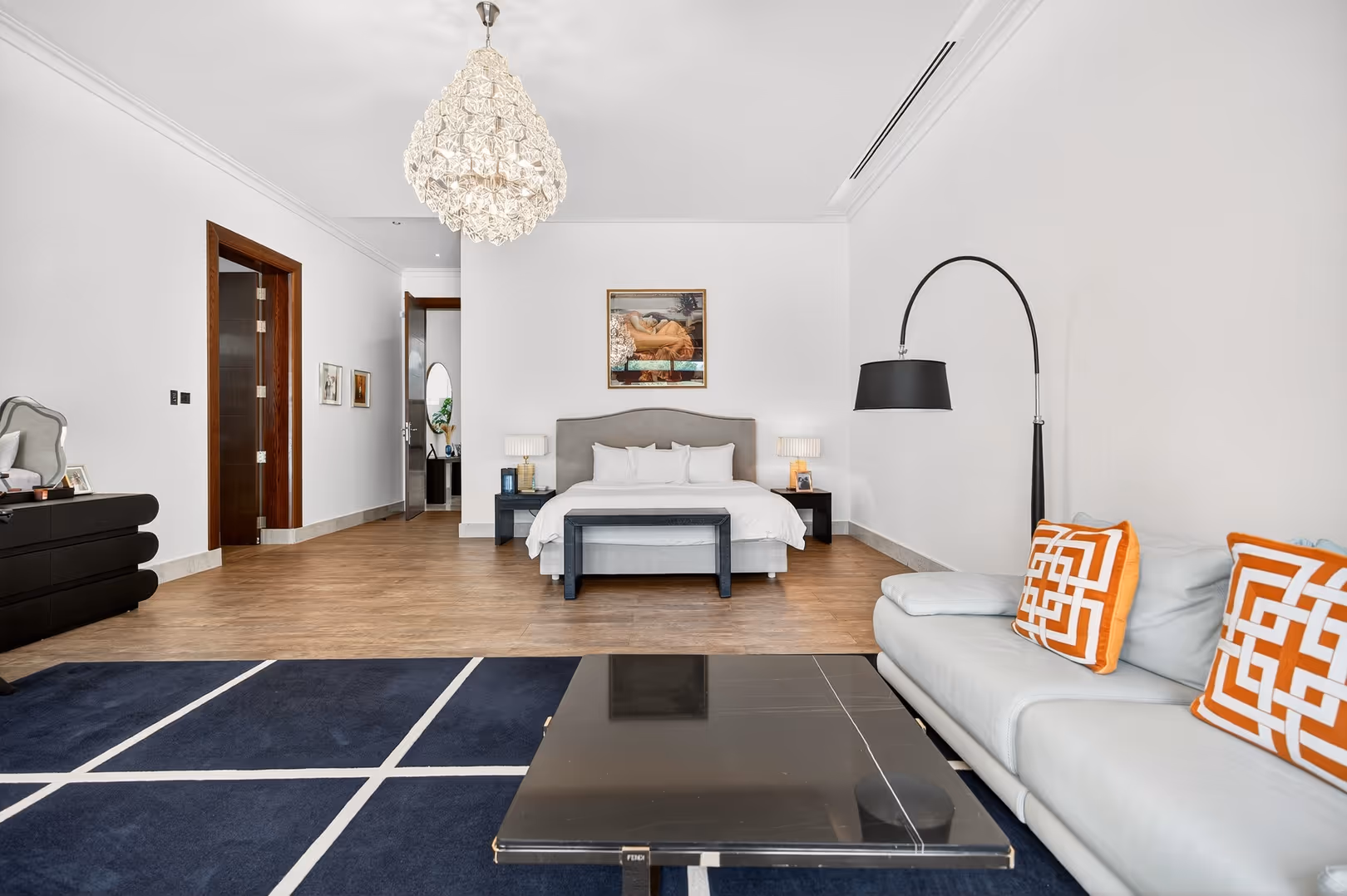 Set on a grand 17,000 sq. ft. plot, this A-Type villa blends refined architecture with indulgent interior detailing for an elevated lifestyle. The expansive floor plan includes six en suite bedrooms, designer living spaces, and a dedicated basement gym, all enveloped in lush, private landscaped grounds. Located in one of Dubai’s most exclusive enclaves, the villa is a sanctuary for luxurious family living and entertaining at scale.