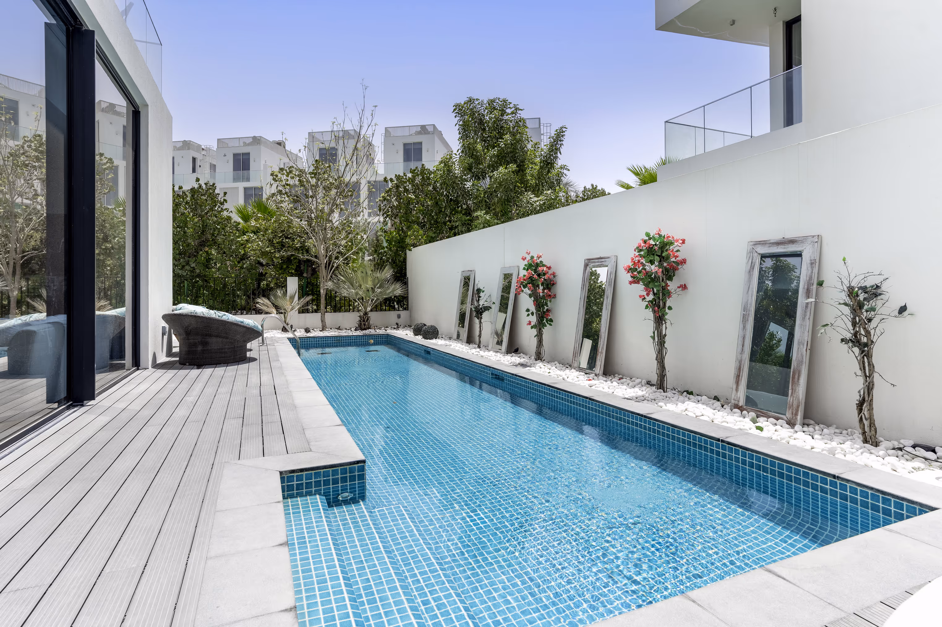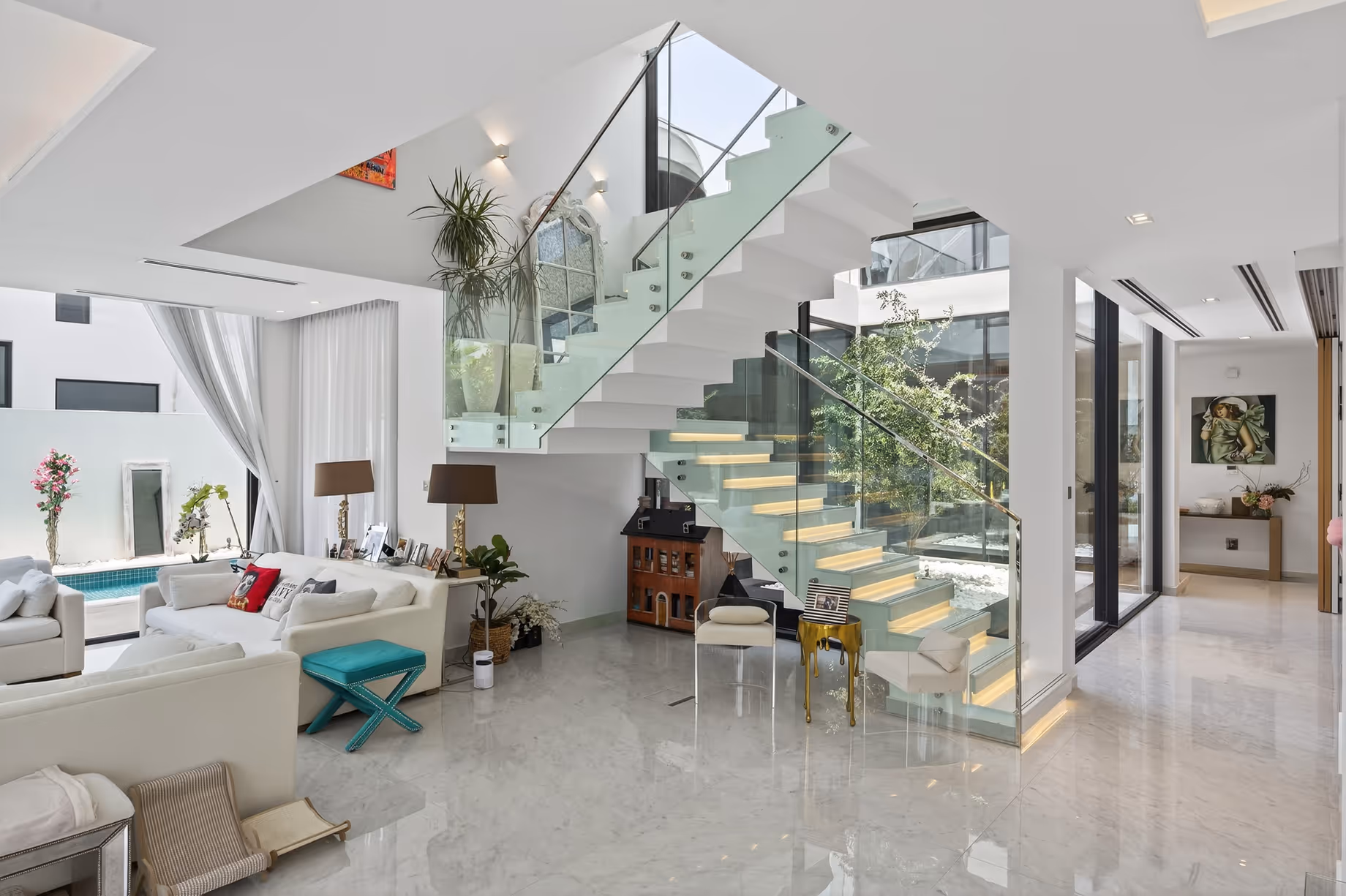 Set in the lush Chorisia 2 enclave of Al Barari, this rare 5-bedroom villa offers next-level luxury living with seamless indoor-outdoor flow. Designed around a striking light-filled atrium with an iconic olive tree centerpiece, the home blends nature with contemporary architecture. Every level features expansive terraces for al fresco lounging, while a private pool and water features create a serene retreat.